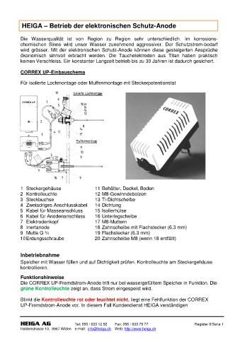 UP-Fremdstrom-Anode vor. In diesem Fall Kundendienst HEIGA verständigen