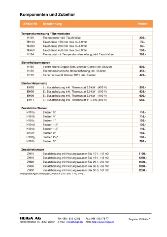 HEIGA AG Tel: 056 / 633 12 52 Fax: 056 / 633 75 77 Register 10/Seite 5